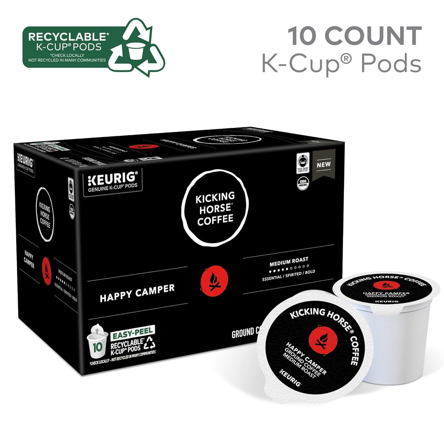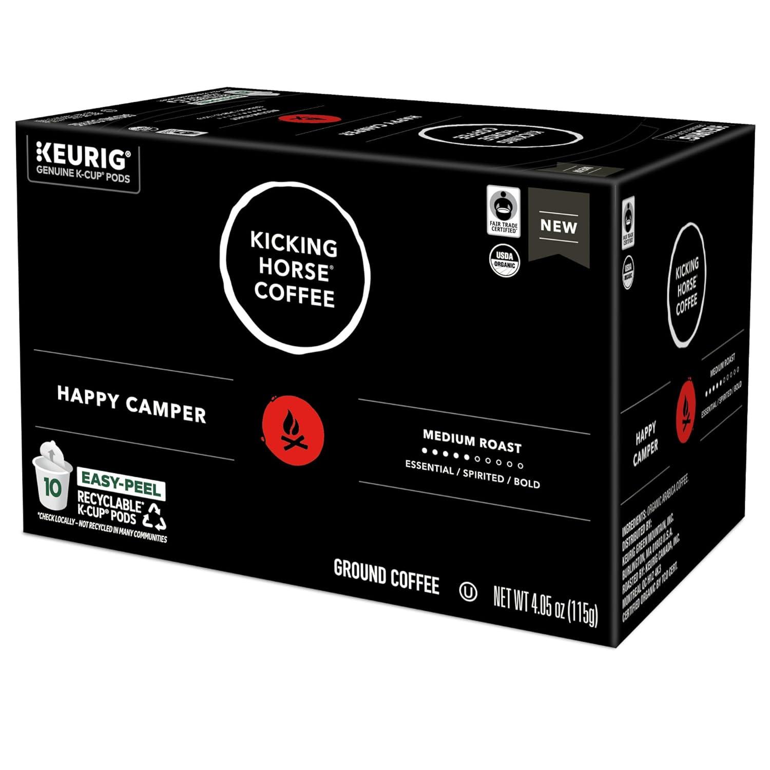 Kicking Horse Coffee, Three Sisters, Single Serve Keurig K-Cup Pods, Medium Roast Coffee, 10-Count Box(Happy Camper)