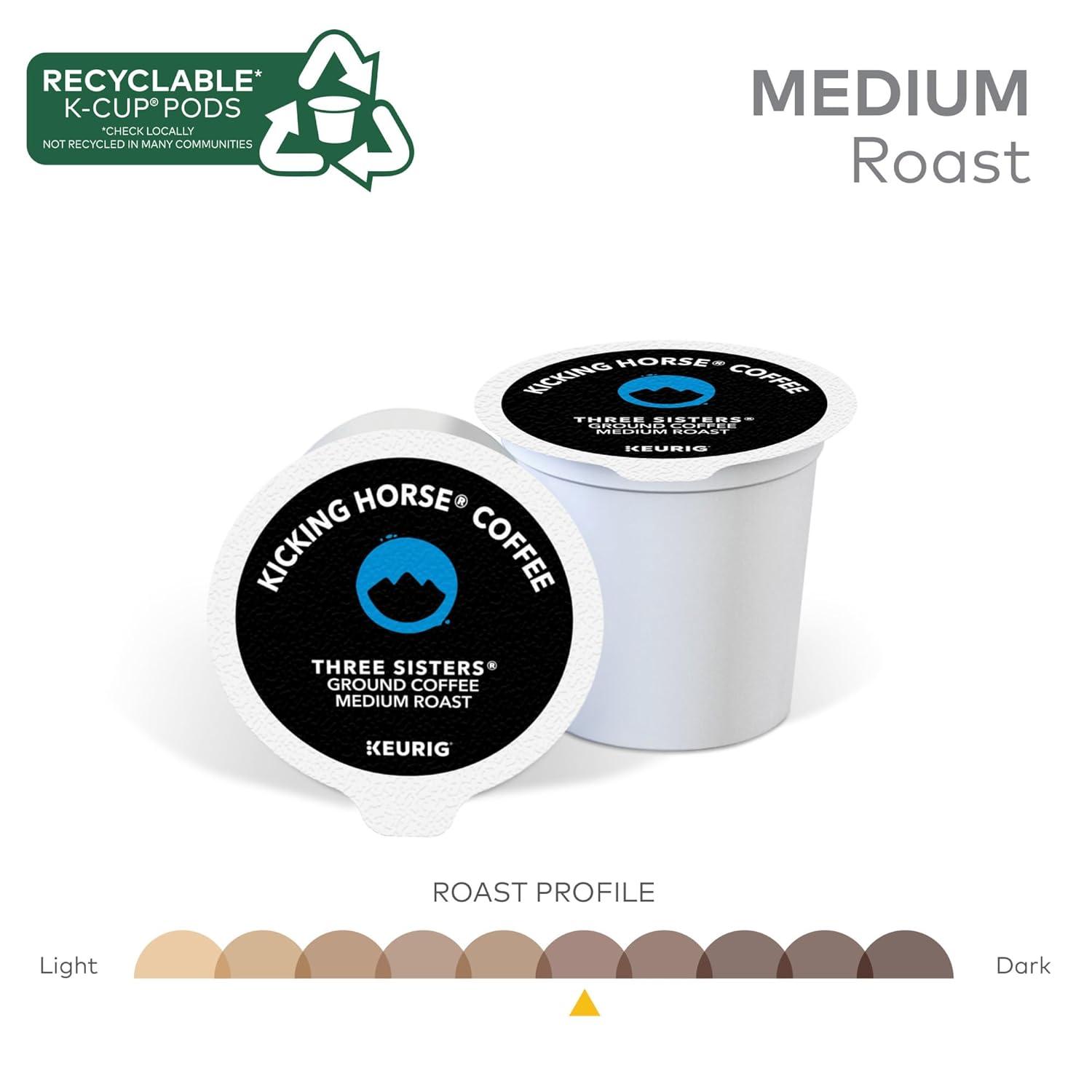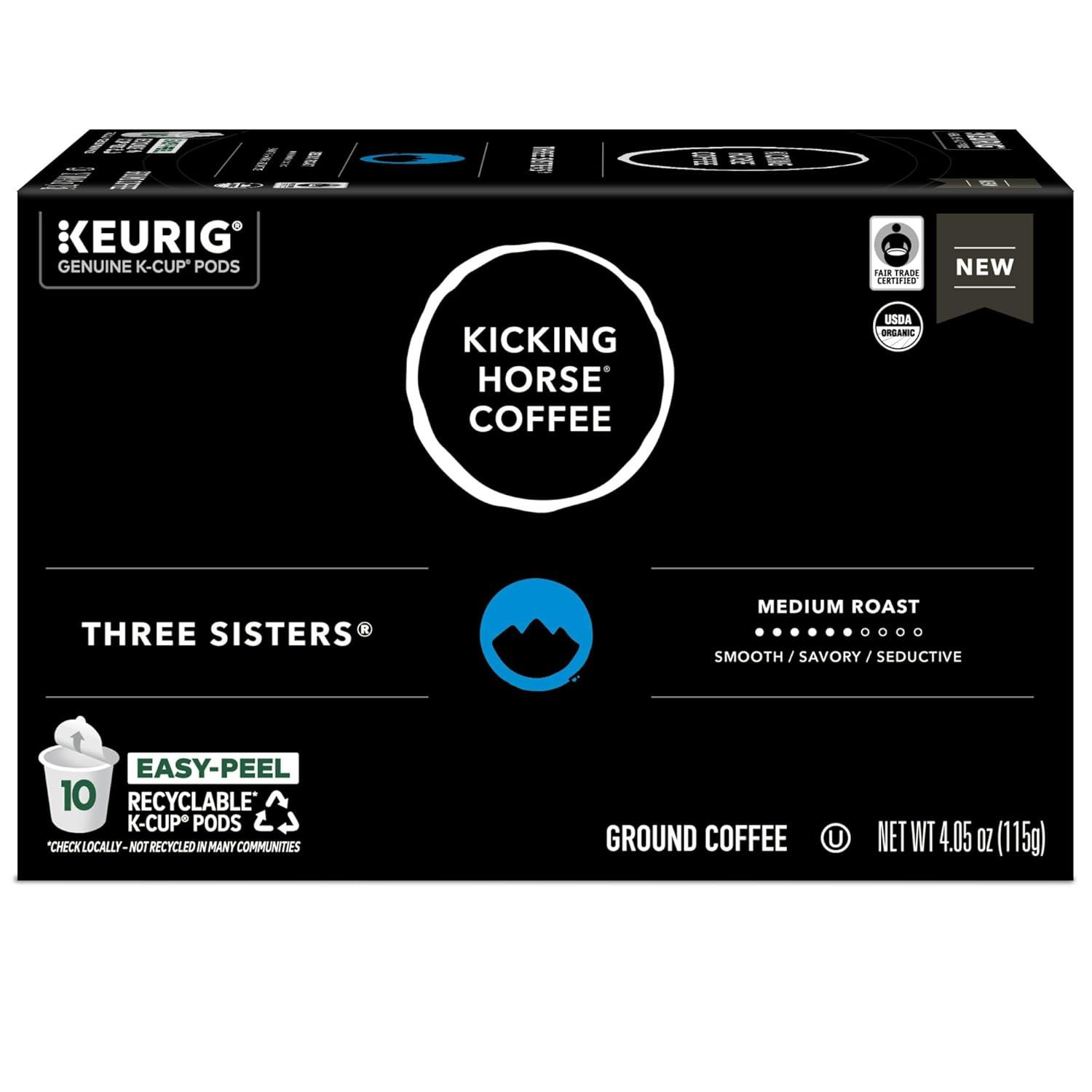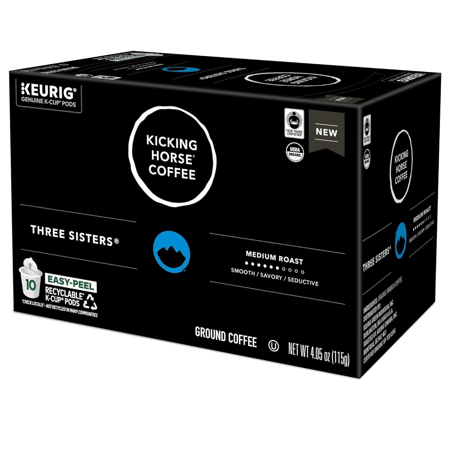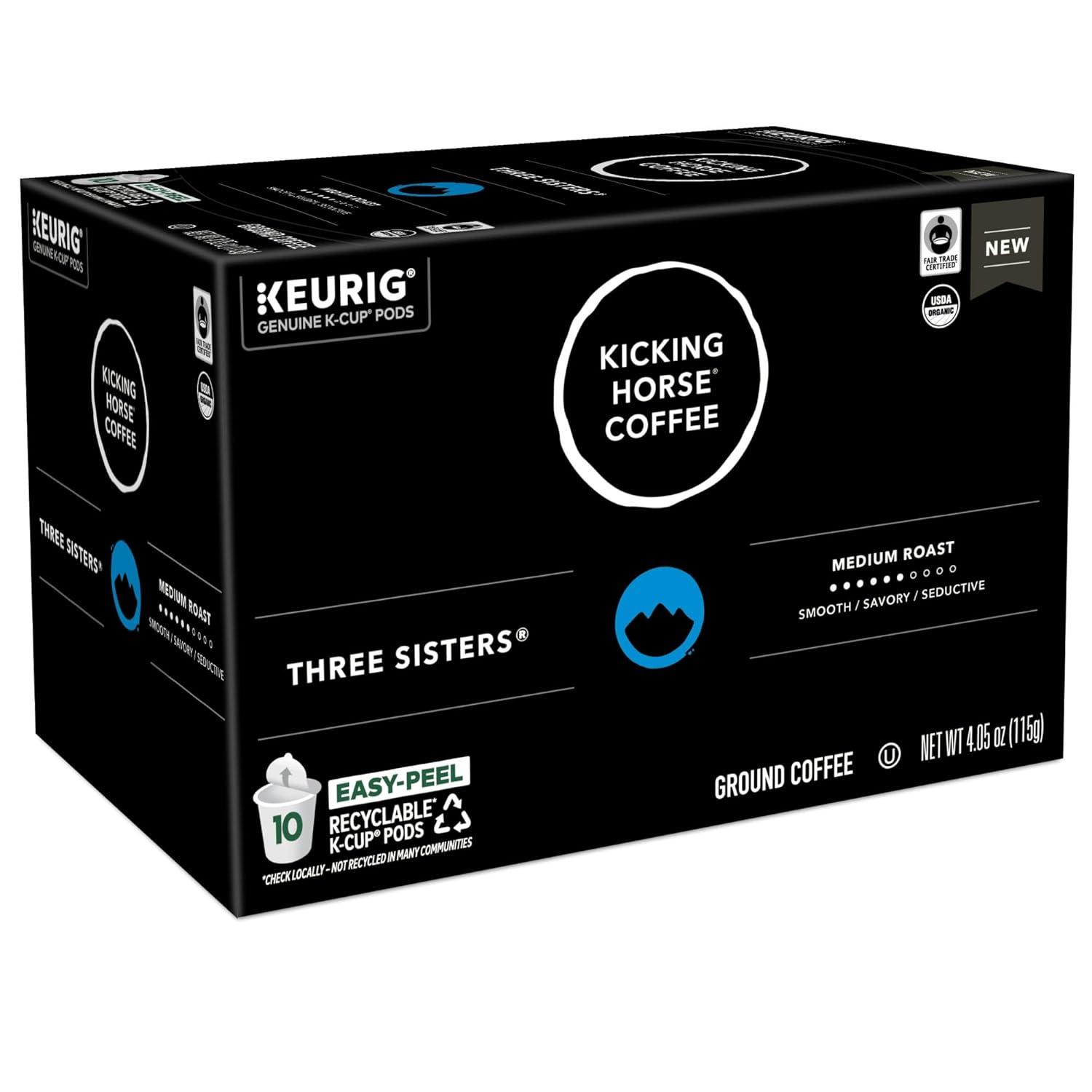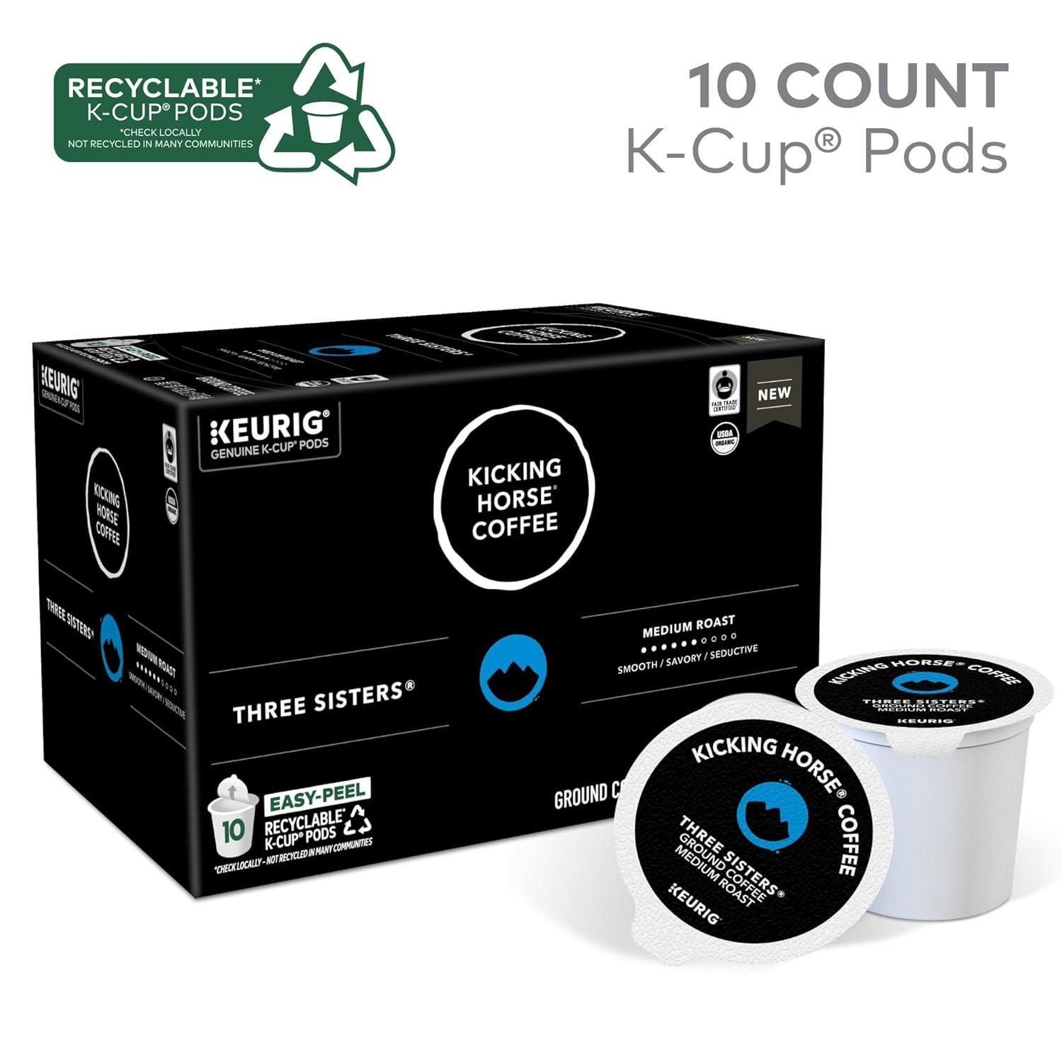 Kicking Horse Coffee, Three Sisters, Single Serve Keurig K-Cup Pods, Medium Roast Coffee, 10-Count Box(Three Sisters)