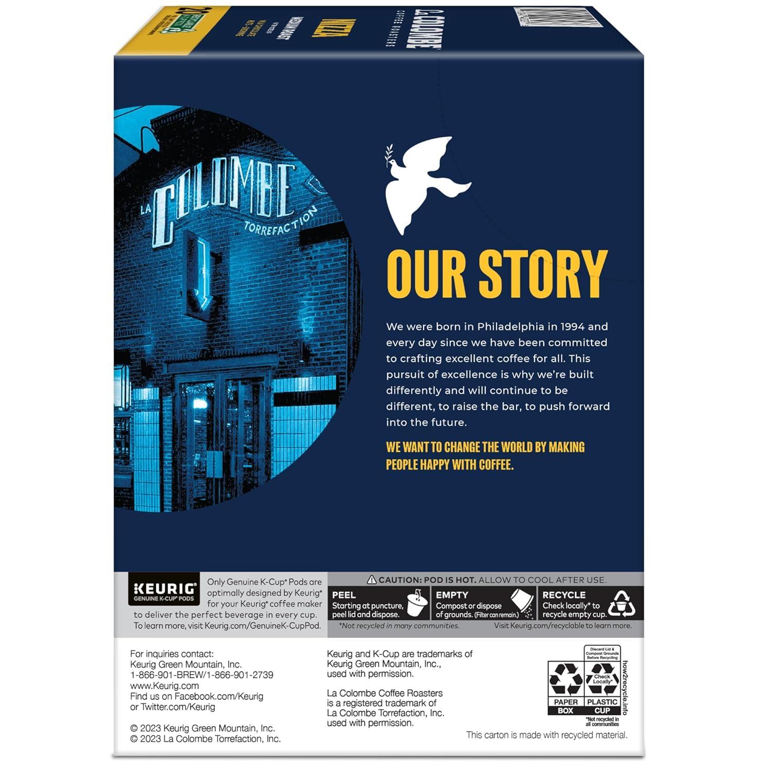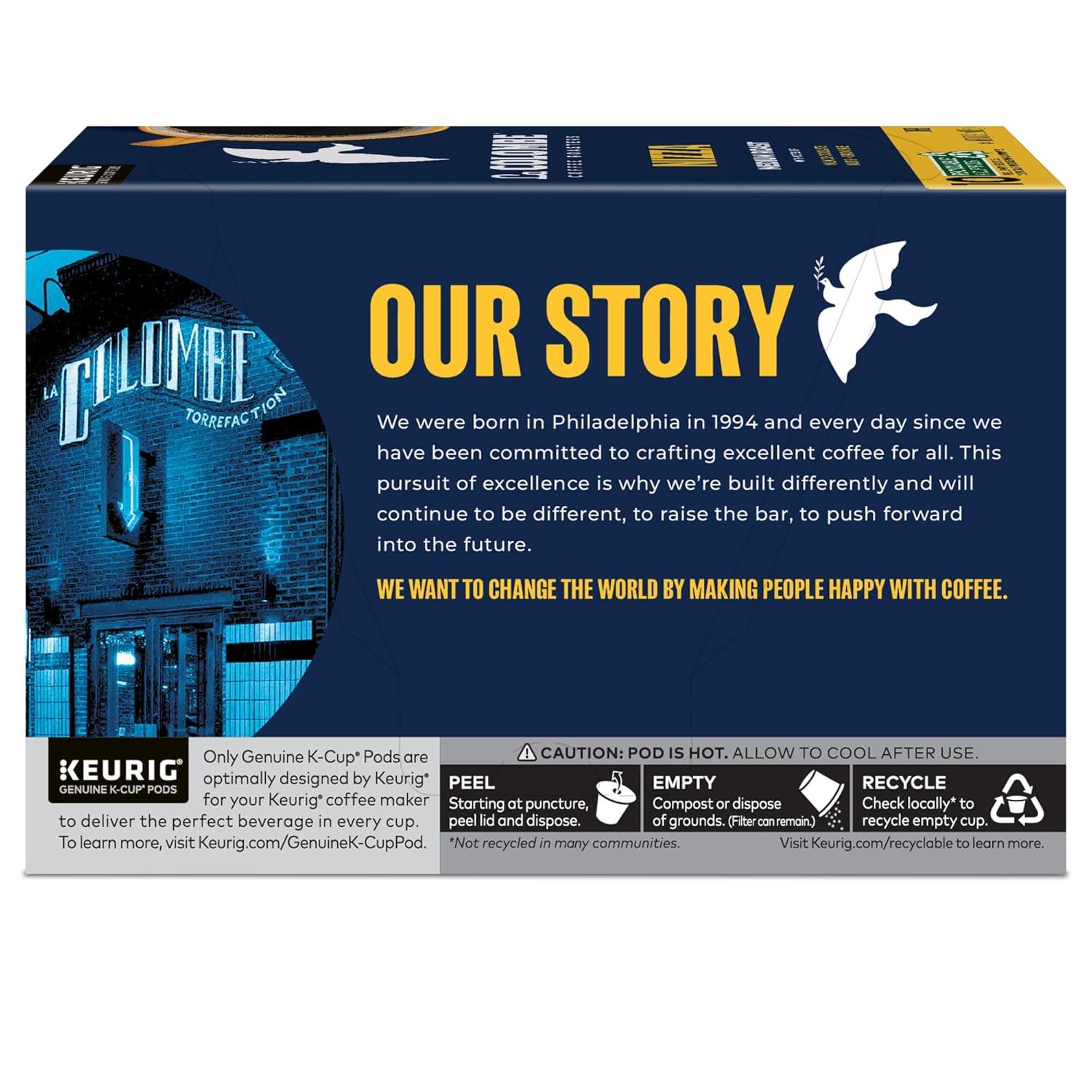 La Colombe® Nizza is a smooth medium roast masterpiece that’s a go-to coffee to start any day. Named after the city of Nice, France — home to some of the best honey in the world — this coffee hits at the heart of sweet, exemplifying a honey-sweet, roasted nuttiness that serves as a delicious homage to its namesake. More than just a longstanding favorite, this pioneering roast was the first coffee ever made by La Colombe®. And since 1994, it’s held a special place in the hearts — and cups — of coffee lovers everywhere. At La Colombe®, we’re driven by one calling — to change the world by making people happy through coffee. That’s why we responsibly source our beans from the world’s preeminent growing regions, give back to our local and global communities, and care for our environment. It’s our way of making meaningful change in the world and filling every cup with exceptional coffee. Each La Colombe® Nizza K-Cup® pod is filled with freshly ground coffee beans and is compatible with all Keurig® single serve coffee makers. Simple. Delicious. And recyclable.* Enjoy the same great-tasting coffee you know and love, and when you’re done, please peel, empty, and recycle. *Check locally, not recycled in many communities.