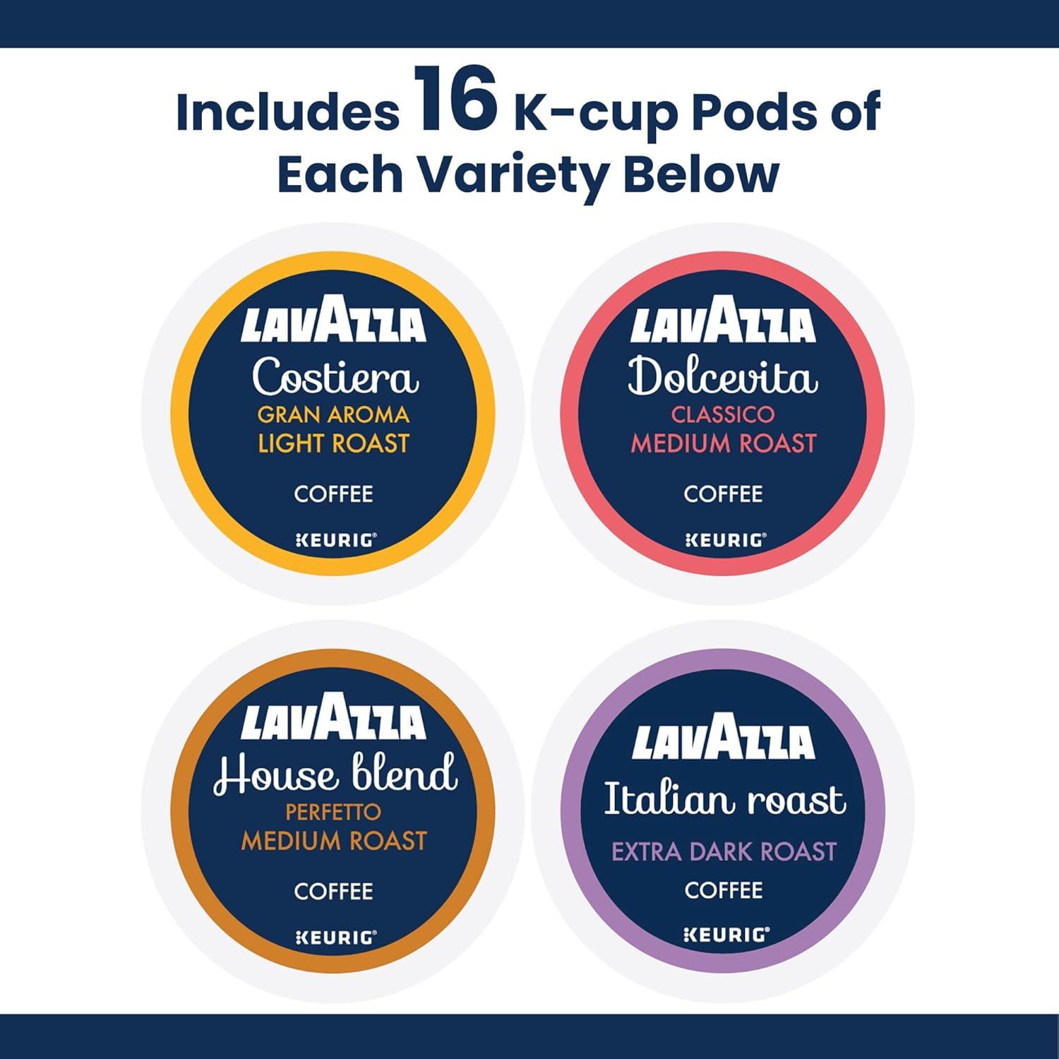 Lavazza Coffee Variety Pack, Keurig Single-Serve K-Cup Pods, 64 Count